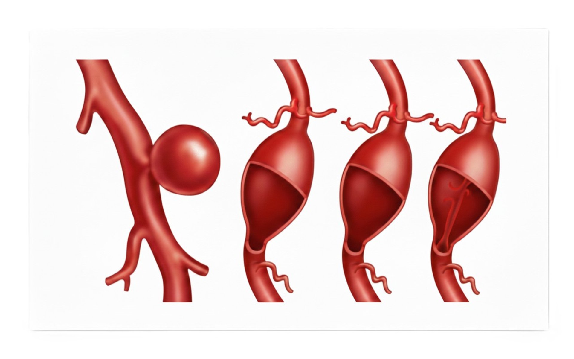Un aneurisma è una dilatazione permanente e localizzata di un’arteria, causata dal danneggiamento delle sue pareti che perdono elasticità e forza. Quando questo accade, sotto la pressione del sangue, il vaso si allarga lentamente. Se questa dilatazione continua, può portare alla rottura dell’arteria.