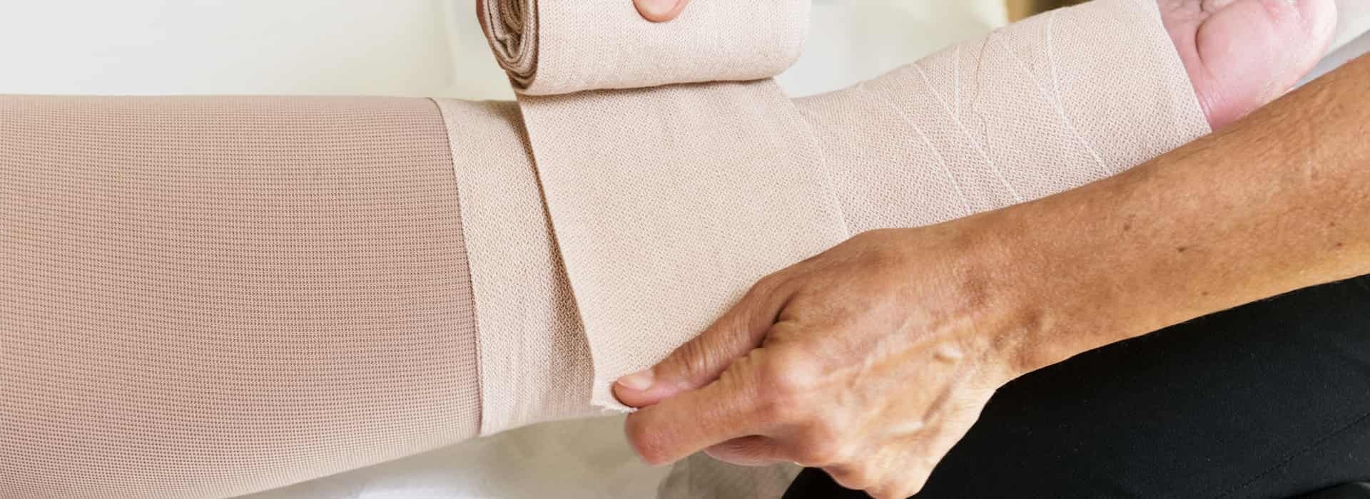 Bendaggio Compressivo Multistrato e successivo utilizzo di calze elastiche idonee: Essenziale per ridurre il volume dell'arto e prevenire il riaccumulo del liquido.
